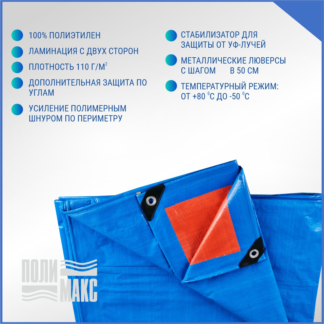—Полог/тент полиэтиленовый 110 г/м2, 12 х 16 м, синий/оранжевый